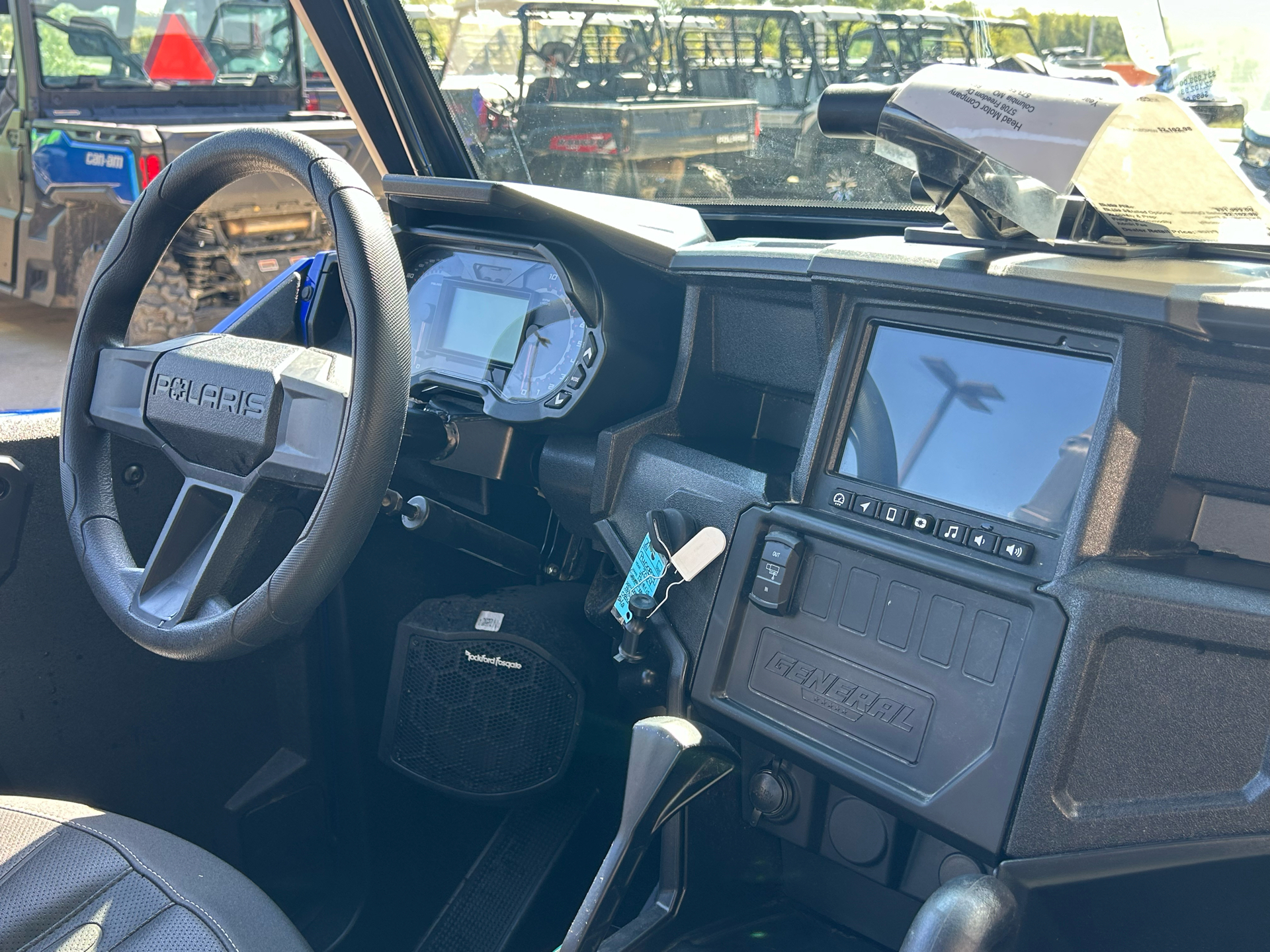 - STAY CONNECTED: Track the trail, share favorite routes and stay with your group with RIDE COMMAND and integrated 7″ touchscreen display with configurable vehicle diagnostics, Bluetooth, cameras, GPS, and Rockford Fosgate® Stage 3 Audio optimized for the trail. Also features integrated Plow Mode and winch Auto-Stop.