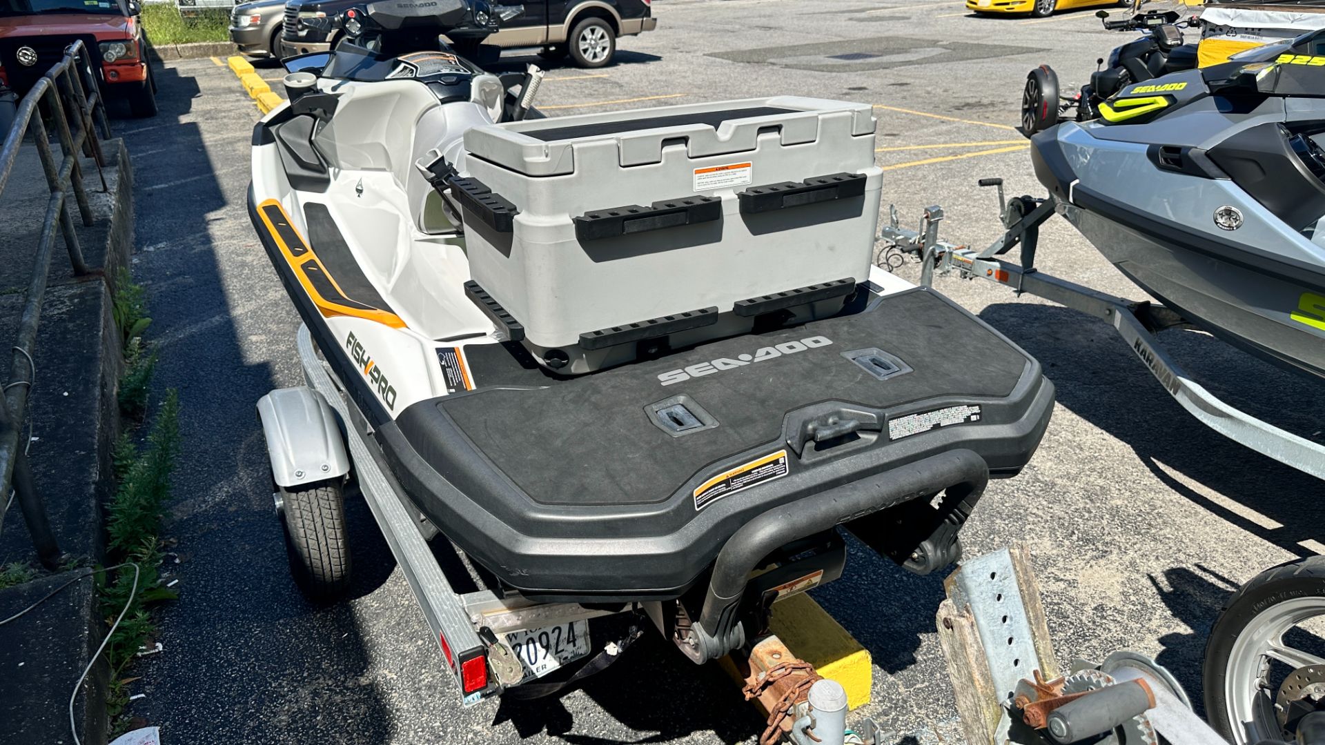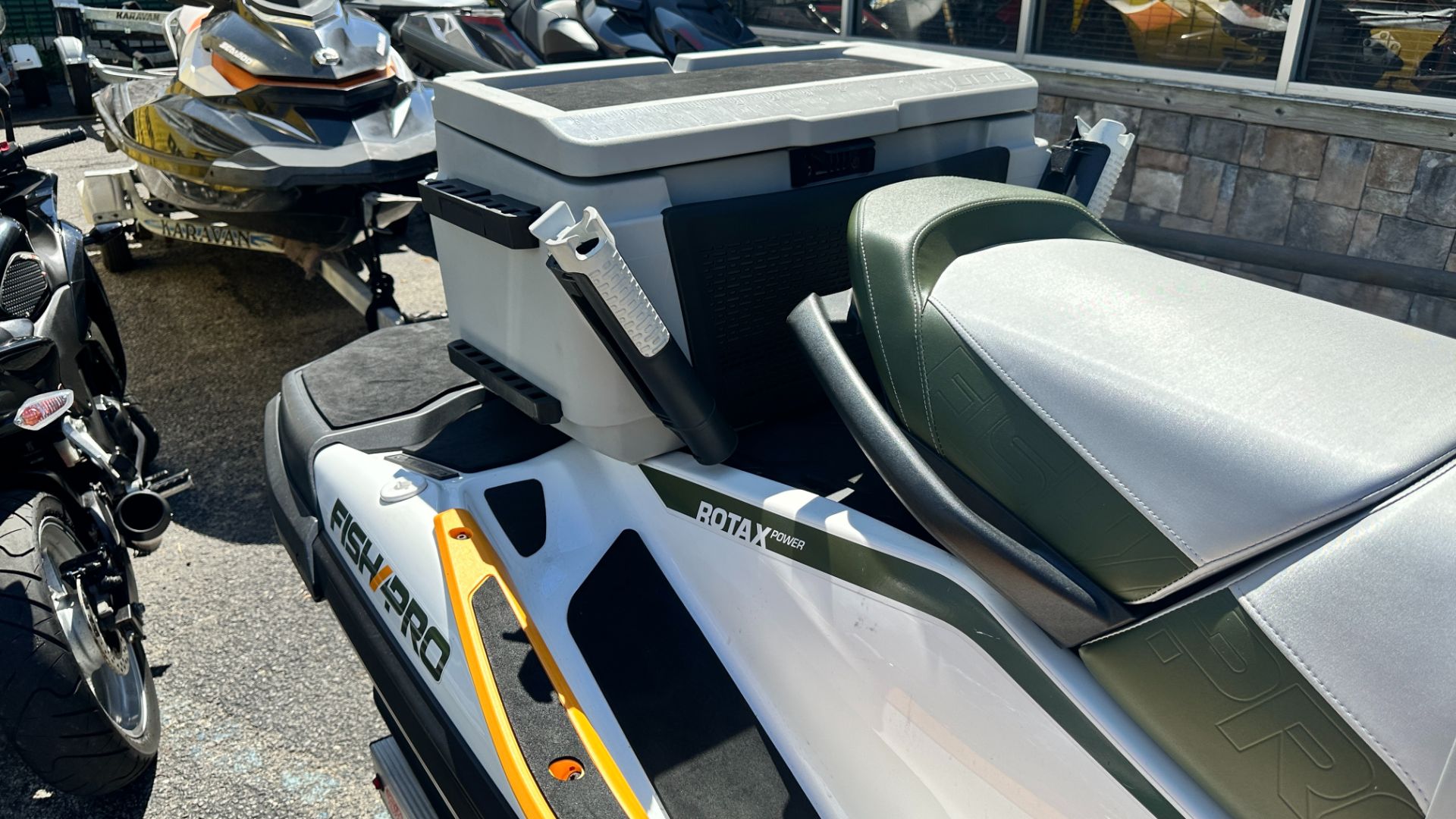 • • ALSO INCLUDED: iControl®, ECO® Mode, Fishing Seat, Split Seat (2 parts), Ergolock™ System, Seat Strap, High-performance VTS™ (Variable Trim System), Boarding Ladder, Ski Tow Eye, RF D.E.S.S.™ Key, Direct Access Front Storage, Watertight Phone Box, LinQ™ Attachment System, Wide-Angle Mirror, Handlegrip with Palm Rests, Footwell Carpets, Large Swim Platform, Tow Hook