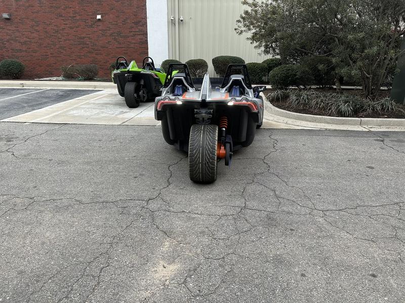 Make your statement from every direction. The Slingshot R will always draw the crowds with its enhanced, bold paint scheme and the best in features and style. The Slingshot R comes with additional horsepower, paddle shifters (AutoDrive), unparalleled finishes and styling, and Technology Package 3 that features turn-by-turn navigation and connected services. Buckle in and settle for nothing but the best.