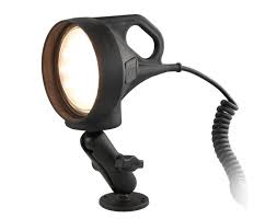 540-lumen LED light (9 W) heavy-duty spotlight standard-equipped with 1″ (2.5 cm) diameter rubber-coated double ball and socket system